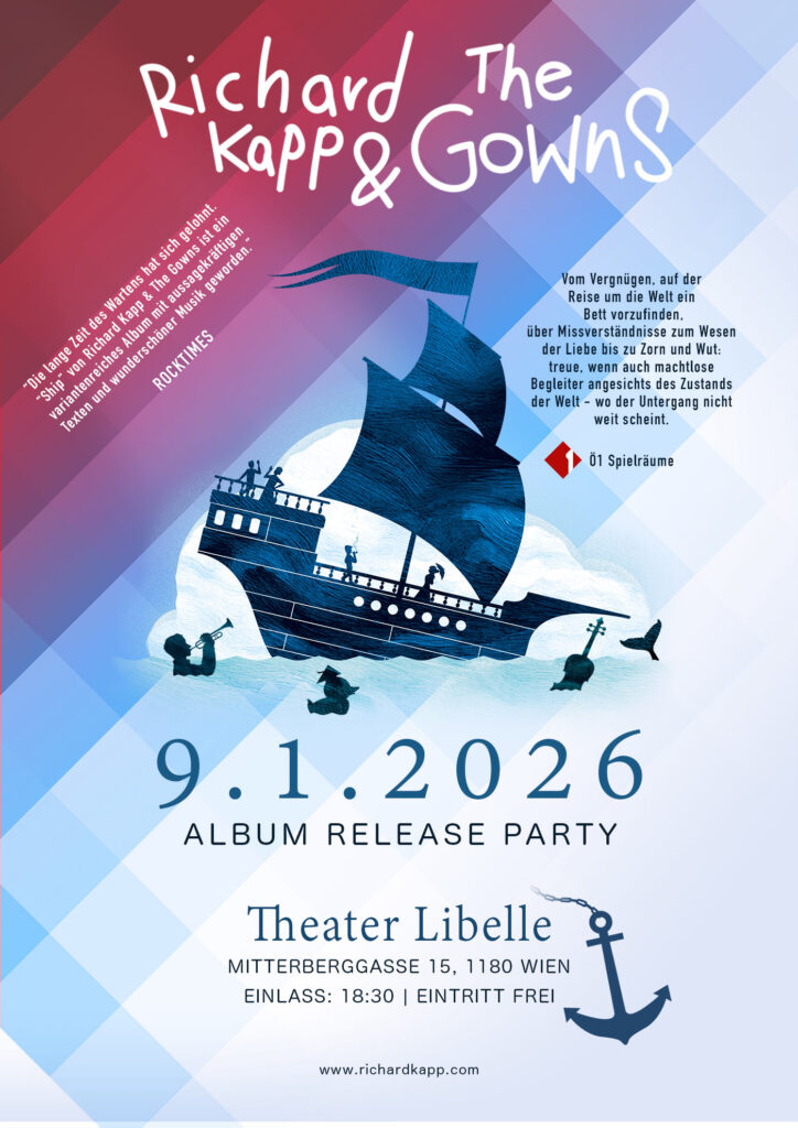 Our album release party will finally happen next year on 09.01.2026, 18:30 in a very charming theatre called Theater Libelle, Mitterberggassse 15, 1180 Wien, FREE ENTRY!